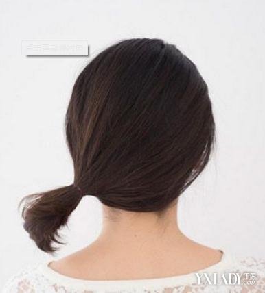 Step3:用橡皮筋固定一个松散的侧马尾辫。