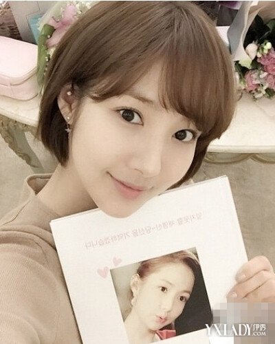 齐刘海其实还可以这样弄,并不是一定要发尾全部剪齐,像这样也是齐刘海的一种哦。将刘海修剪到眼睛上方的位置,然后用卷发棒将发尾微微内扣,将刘海微微的分开,超级显嫩!