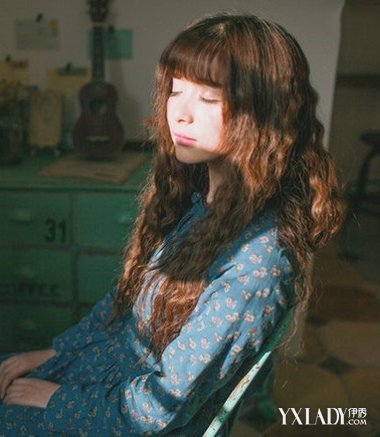 烫大卷的发尾刚好从胸前直接梳过去,斜刘海有些略蓬松了,少发量才能让刘海保持如此自然的曲线,而不会与长发的多发量产生隔离效果,洋梨脸女生发型,发丝最好往前梳。