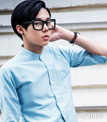 这样的 一款韩式男生短发型,偏分之后,发量多的那一边整齐有致的摆放在额头,减龄百分百,弧度修颜,戴上一副眼镜,酷帅不失个性。