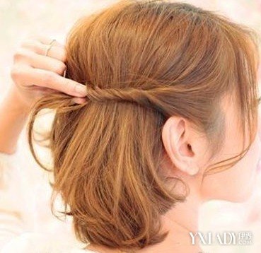 另外一侧发束重复第一步的方法就可以了,然后跟上面扭转的发束固定到一起就可以完成了。
