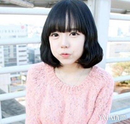 1、圆脸的女生们可能觉得自己的脸太圆了,但是其实圆脸是最百搭的脸型,黑色的齐刘海短发荷叶头发型,就很适合圆脸的女生们。