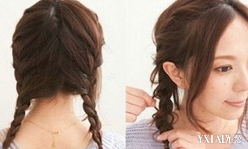 步骤四:重复以上步骤,将头发编成两条可爱的小辫子,从辫子中抽取一些头发,制造蓬松感。