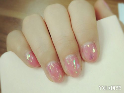 【图】碎玻璃美甲图片 渐变色彩虹碎玻璃美甲教程