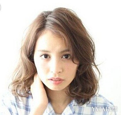 4、偏分式的短发发型,对于脸大的女生来说是很不错的一款发型,显得成熟又干练,头发有点波浪卷,看起来也多了几分浪漫的感觉。