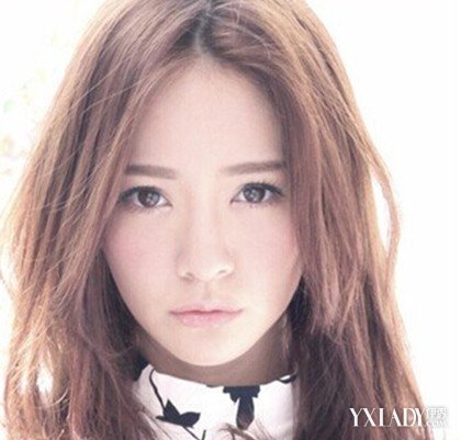 5、接近中分的女生中长发披发发型,头发有点小卷,空气感不错,看起来修脸效果也很强,很棒的一款脸大女生的修脸发型。