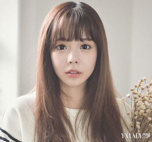 齐刘海略微有些弯曲的设计反而更显得甜美清纯,长直发本身就有着清纯的效果,尤其是披肩的话,大批长发落在肩头,唯美自然也特别适合冬季,让人特别想好好呵护。