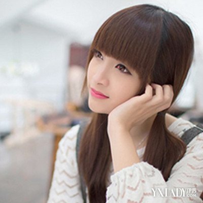 这是一款很能突显少女风格的双马尾发型,柔顺的中长直发发型,刘海修剪成平整的齐刘海发型,搭配白皙嫩滑的小脸,清新学院风十足。