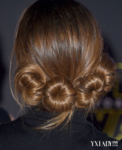 小编点评:这种低盘发也可以试试,不过四个有点多,有强迫症的妹子可能无法接受,可以改成两个的。其实方法都是一样的,想弄几个就将头发分成几份,然后按照普通丸子头方法盘好就行了。