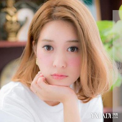 发型点评:亮目的金黄发色让这款梨花式内扣齐肩发型迸发活力,与蓬松的发型带来的凌乱美极为相衬,为原本简单的中长发增添几分灵动感。
