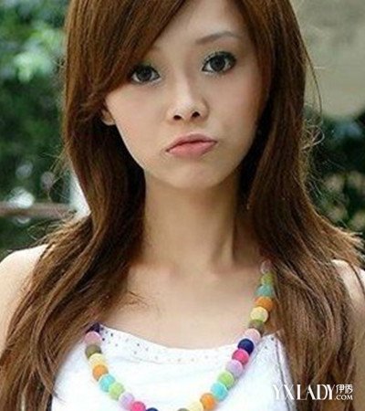 齐齐的刘海向一边梳去,脸颊两旁略微有点短的头发和后面那非常长的卷发形成了一个非常大的反差,可是这样的反差反而让人觉得很自然,而且在这样反差下的美眉看上去非常之可爱。