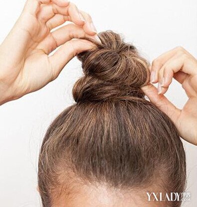 固定好之后,不要以为这样就可以了哦,要用手将丸子整理一下,如果太紧,要用手扯蓬松一些,扯的时候不要太大力,防止扯太多碎发出来就不好看了。如果还是担心丸子头散落,可以扎上一个橡皮筋,这样更加稳固。