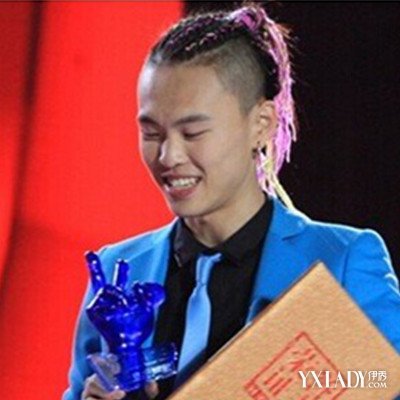 这款是粉色染发的男生的长发发型,头面的头发剃成了铲青风格的发型,再在头顶上面再扎成小辫子发型,看起来是特别的可爱的。