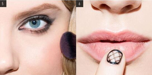 第六步:指腹沾橘色的口红,涂抹在双唇上面。口红要选择滋润一点的,不要选择哑光的,哑光的涂抹在干燥的嘴唇上是非常难看的。