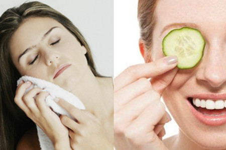 卸妆之后,你就可以做一些最基本的护理步骤,比如说用黄瓜或是热毛巾。用温度适宜的热毛巾去敷眼部,可以给眼部的毛孔打开,利于做精华的吸收,而且眼部会感觉很舒服,也可以顺带敷一敷脸部。而用薄黄瓜片放在眼部可以给眼部做面膜。没有黄瓜的女生们也可以去买眼膜。两者的效果是一样的,但是我是比较喜欢黄瓜敷片的,健康有效纯植物精华。
