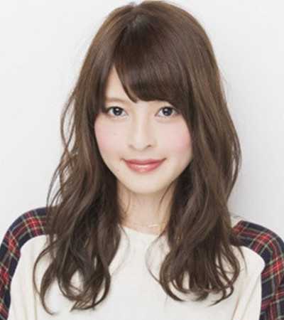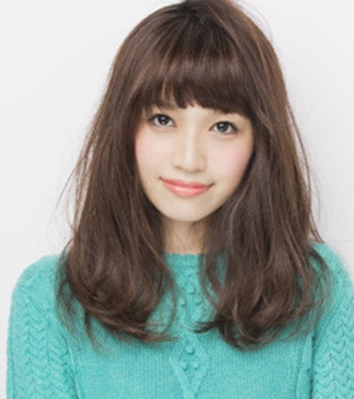 时尚点评:内扣齐刘海搭配蓬松中长发让大脸瞬间变小脸,两边的卷发自然而落,也为大脸女生起到修颜修脸作用,棕色的染发可以让脸部皮肤看起来更加的白皙。