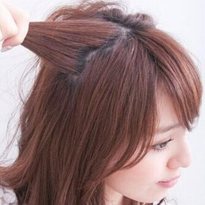 第二步:在右边沿着刘海从边上抓起一撮头发。