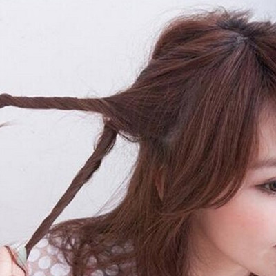 第四步:从脑后再抓起一撮头发同样也扭转成发辫。