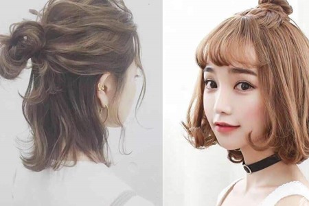 对于短发的妹子来说,扎丸子头会好像有点头发不够用的感觉,但其实完全可以扎个半丸子头嘛!
