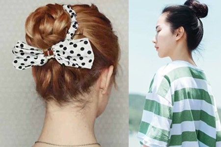 但有又两种扎法,左图的是扎在后脑勺的,要诀是:头发松却不散、随意却不凌乱,给人一种慵懒、舒服的感觉;右图的是扎在头顶上,要诀是刘海很重要,或者发际线很重要,当然还是要有松却不散、随意却不凌乱,不过这一款可以稍微扎紧一点。