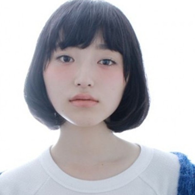 乌黑头发的一款发型张扬出几分可爱与文艺范儿,包裹脸蛋的微微内扣烫卷头发,看似十分的简约却为大脸修脸不少,整个来看是可以让女生的大脸在视觉上有显瘦的作用的。