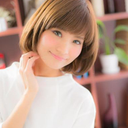 内卷的中短发发型,与齐刘海搭配,衬托出小巧的五官,显得很有甜美范,棕色的染发也显得时尚靓丽,甜美修颜,棕色的染发也增添了不少的时尚感,简单修饰了脸型,深色的头发也显得简单大方。