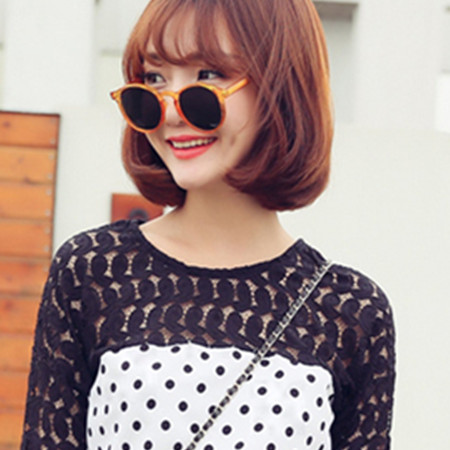 微卷的中短发发型,搭配上蓬松的刘海设计,轻松修饰了脸型的不足,凸显出甜美的气质来,棕色的染发也显得很有时尚感,轻松修出完美脸颊,一起来看看吧。