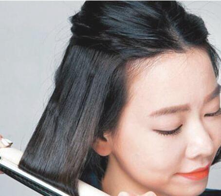 烫头发的时候,不同方位的发型,梳起来自然是要不一样的,脸颊两边的头发,向前倾斜60度角,前边的头发要高一些,卷发棒方向注意保持。