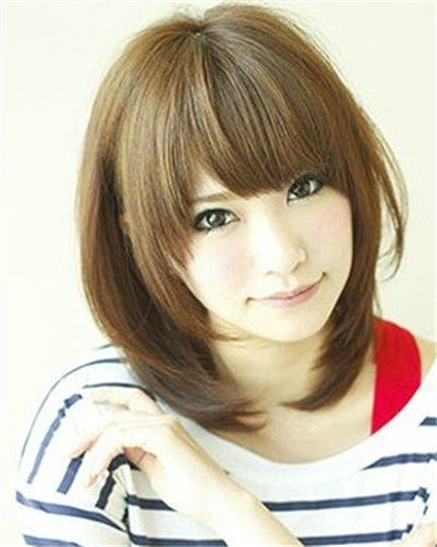 这款稍微厚重的短发发型,因为中长的风格,第一眼看上去很有甜美邻家小女生的气息,特别是斜刘海以及中长的风格,完美的秀出精致的五官,胖脸立刻展现标准鹅蛋脸,如此精致千万别错过噢!