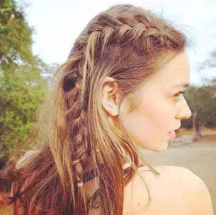 女人味的小编辫,可爱的女孩与温柔的女人味立显,辫法也十分的简单。 在耳朵前编出两条极细的编辫,但是并不一直编到发梢,在和耳垂平齐的位置上下就可以错落地用透明皮筋束住。