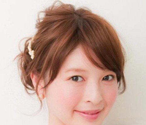(4)假如发束比较大,可以多使用几个发夹,夹牢固即可。高耸的丸子头活力十足,蓬松的斜刘海修饰出优雅气质,可爱迷人。扎发步骤: