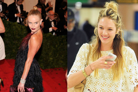 要问如今欧美超模最喜爱出镜率最多的发型是什么?排名第一的当然是丸子头,不管是半丸子还是把长发全挽起,看上去极简气质的造型却能为你的形象加分不少。尤其是高高绑起的发鬓不但让你看上去俏丽又元气,在酷热的夏日还能起到散热的作用呢。