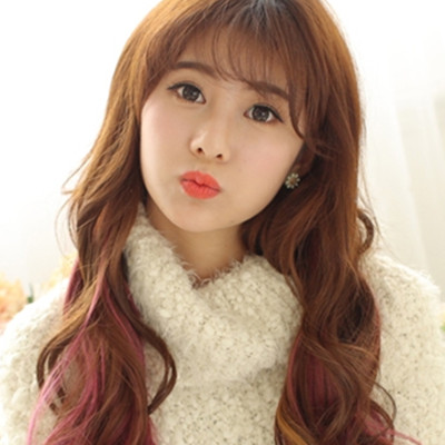 这款大波浪长发烫发发型很受韩国女生欢迎,最大的特色就是发尾颜色的挑染,配合大波浪的设计,显得很随性与自然。加上空气刘海,使这款发型更加时尚有型、俏皮可爱,是大圆脸女生的不错选择。