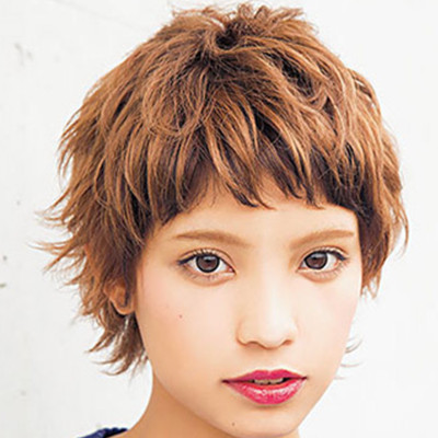 时尚看点:想打造帅气中性风的女生可以试试这款短发发型,蓬松的短卷发搭配粗糙的棕色发色,露额头设计更加清爽霸道,配上精致的妆容后尽显迷人魅力。