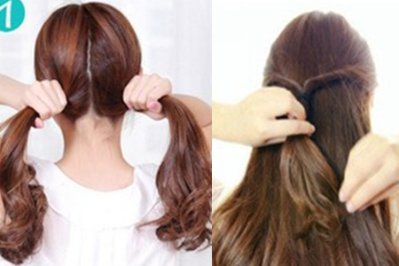第四步:用手指捏住垂下来的头发,慢慢地向上卷,然后用小夹子把头发给固定住。在选取小夹子时要尽量选用体积小、不明显的夹子,以免破坏发型整体的美感。