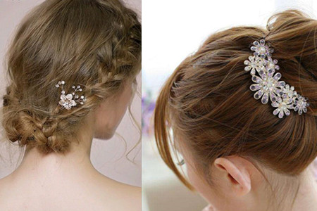 现在的发饰很多都以清新为主,比如一朵银色的小雏菊,插在金色的盘发上面,虽然看起来只有小小的一朵,可是却因为和它附近的小麻花辫相得益彰,有无比优雅清新的感觉。也有惯用的鲜花的发饰,把鲜花通过一定的方法扭转成一个花圈,套在简单的盘发上面,也很清新自然。