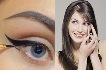 单眼皮的女生适合浓重的大眼线,眼尾略微上翘,眼形稍显细长,整个人就想狐狸一样妩媚。这类眼线要先将内眼线填充好,再沿着眼尾的弧度向上画出一厘的长度,半闭着眼睛另画一条从眼角到眼尾连接的眼线,慢慢将两线之间的眼线填充完整即可。这类眼线的眼尾部位的三角区内比较宽大一些,但是眼睛睁开的时候会增加眼睛狭长的感觉。
