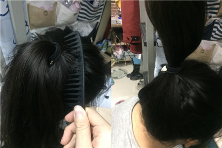 第二种方法也非常的简单,比较适合一些不太会打理自己头发的人。我们需要准备好一把梳子和橡皮筋,先用梳子将头发梳理好,这个时候就可以不用管头发的蓬松程度,我们可以直接用日常梳理头发的方法来将头发梳理好。梳理好之后就可以直接用橡皮筋将头发扎起来,尽可能的将头发扎紧一点,这样才方便我们进行下一个步骤。
