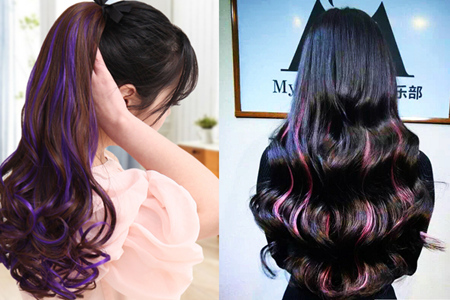 推荐第二种,如果黑头发打底,那么可以选择紫色挑染,尤其在卷发发尾端。这样的头发,无论扎起来还是散着,都会给人时尚温柔的感觉。