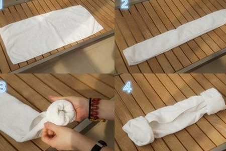 不过,妹子们应该怎么样才能够用毛巾固定住自己的头发呢?我们需先将毛巾摊开,然后向内对折一次。紧接着我们要将长边往里面折进去,一边要压住另一边。折叠好之后,我们要将毛巾的外端卷起来,还要将折叠好的地方压住。