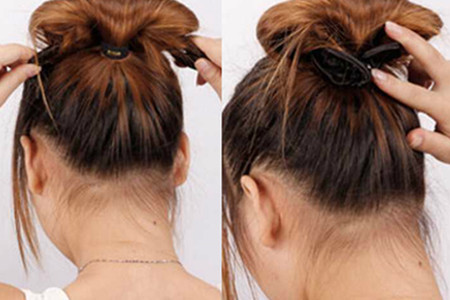 第三步:将头发卷至皮筋处就好了,然后将盘发器的两端向中间拉。这时候力度一定要大,以防头发散开,接着将盘发器两段打一个结。这样丸子头就初步成形了,再梳理一下杂发,用橡皮筋将卷好的头发绑起来。也可以绑上可爱的发带或是发饰,将头发装饰一下会更可爱。跟着上面的步骤,轻轻松松就能扎出来完美的丸子头了。