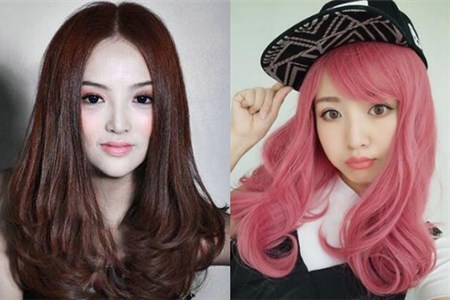 国字脸女生的颧骨比较突出,整张脸略宽,适合她们的当然是遮脸效果很好的发型,比如梨花头。中分梨花头的遮脸效果尤其出色。正如第一款栗色中分梨花卷,这款发型前面的头发很自然的把整个脸型修成了精致的鹅蛋脸。如果大家觉得中分太成熟,那就可以留斜刘海梨花头,就像右图发型一样,粉嫩的颜色配上可爱的斜刘海,不仅遮脸还减龄。