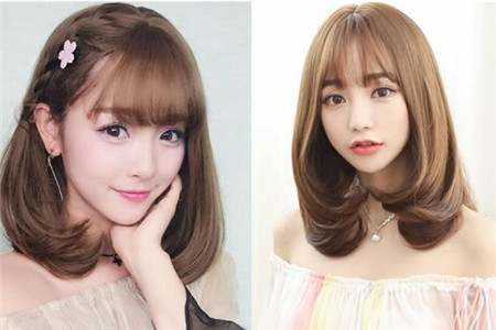 这款发型这几年很流行,适合圆脸的美眉们。在这款发型是梨花烫和空气刘海搭配,让你看上去很清纯,减龄效果一级棒。 这一款发型如果搭配上韩式裸妆,效果会更好,能十分有效突出小女生的单纯感。