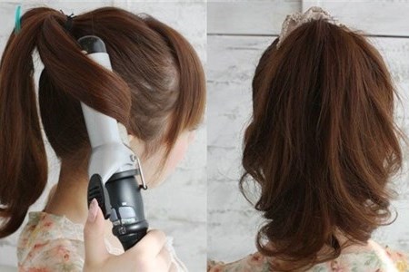2.由于刚卷好的发丝比较集中,没有蓬松感,所以,要想让马尾卷翘蓬松,我们还需手动将其抖开。抖开发丝后,甜美的蓬松马尾就弄好了。