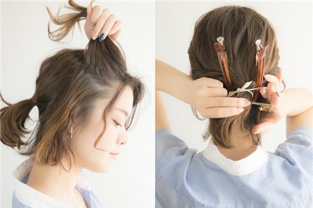 短头发特别适合扎韩范儿微凌乱马尾,这种马尾不但时尚还很减龄,想让自己变得更加可爱的朋友就可以扎这款发型。它的步骤如下。
