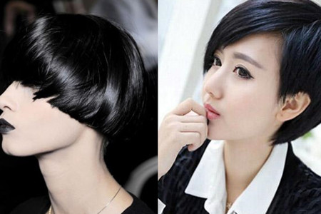 近几年来,波波头短发造型盛为流行,许多追求时尚个性的女生都会选择这样的一款短发造型。上图左边这款黑色短发波波头发型可以说是很具有代表性的了,不管是哪种路线的女生都可以尝试下,能够收获令人惊喜的惊艳效果!