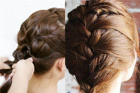 这种把全部头发编起来的方法也比较简单,我们只需要像鱼尾辫一样把它全部编好,然后在脑后方把两边儿的头发交叉固定就可以了。