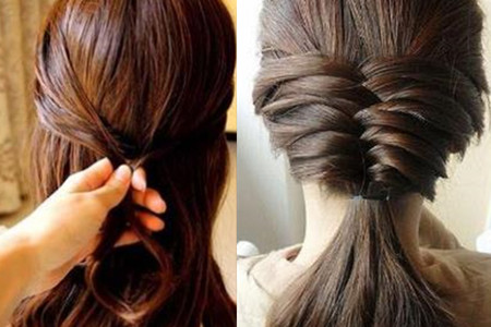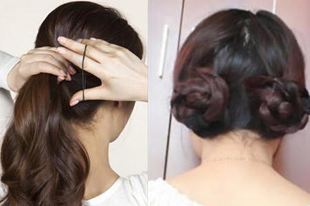 7.取出一小股头发,然后将所有的头发缠绕住,并固定好(可佩戴上一些精美的发夹)。