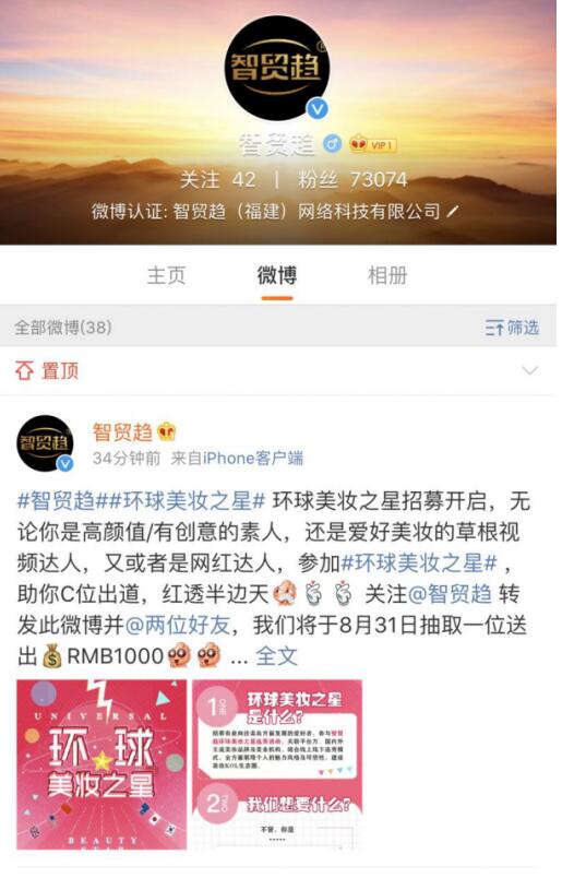 为此我们也在微博平台推出现金抽奖活动,只要搜索【智贸趋】转发下面这条微博,即有机会赢取1000RMB,还等什么,好运转起来吧!