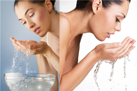 这个步骤是在倒数第二的位置。既然在前面清洗时,用温水使得脸部毛孔张开,那么在后面就应该用冷水让张开的毛孔合起来,进行毛孔收缩。用手撩起水洗脸,一般15到20次,脸部的各个部分都要用冷水洗,靠近发际线的部分要特别注意,因为这是容易被忽略的地方,要保证脸部的洗面奶等物质完全洗干净,无残留。